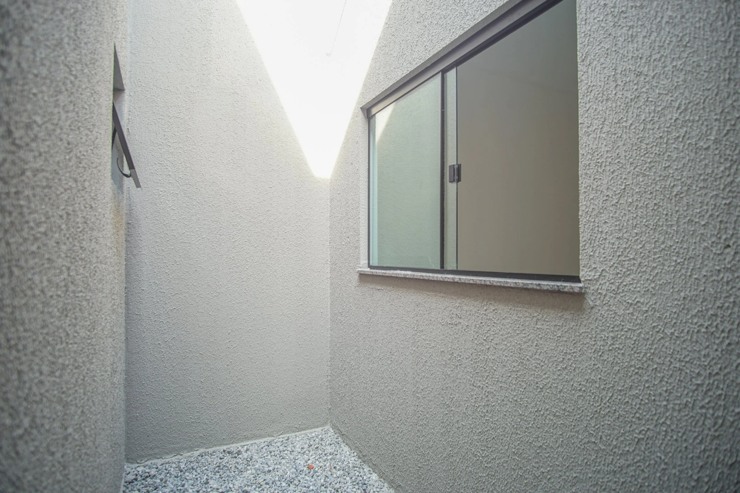 Serviço: Projeto arquitetônico, 3D e material para divulgação imobiliária. 3 casas geminadas, contendo 3 quartos (sendo 1 suíte) quintal nos fundos com preparação para piscina, jardim de inverno e vaga para 02 carros.
